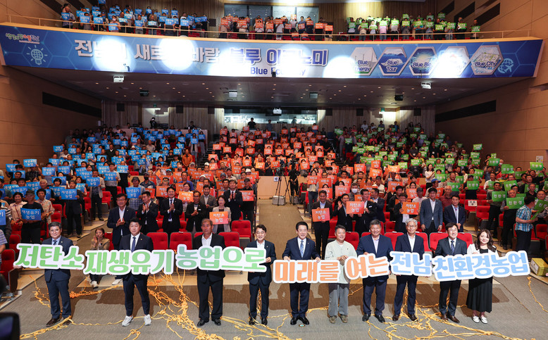 행사에서는 전남 친환경농업 현황과 저탄소‧미래농업 비전 발표에 이어 유기농 실천 의지를 담은 도-시군-협회의 다짐 영상 상영, 비전 선포 퍼포먼스 등이 진행됐다.