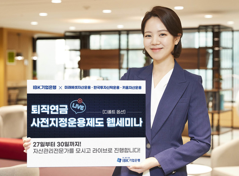 이번 라이브세미나는 기업은행 퇴직연금부와 자산운용사의 전문가들이 직접 진행하는 방식으로 실시되며 디폴트옵션에 대한 안내와 실무자가 알아야 할 도입절차에 대한 자세한 설명도 진행될 예정이다.