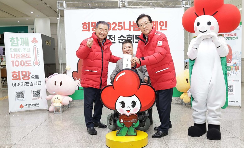이어서 오후에는 시청 1층을 찾아 사회복지공동모금회에서 개최한 ‘희망2025 나눔캠페인’ 순회모금에 참석했다. 조 의장은 이웃과 함께하는 따뜻한 나눔 행사를 마련한 대전사회복지공동모금회에 감사를 전하며 “대전시의회도 복지정책을 더욱 세심히 살피는 의정활동으로 그늘진 곳 없이 대전이 더욱 따뜻해질 수 있도록 항상 노력하겠다”고 밝혔다.