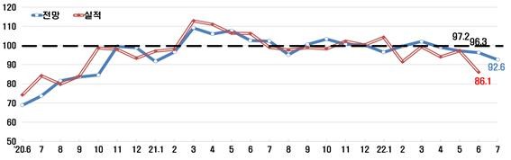 주3) 제조업 BSI : 93.6(‘22.6월), 90.4(7월), 비제조업 BSI : 99.3(‘22.6월), 95.1(7월)