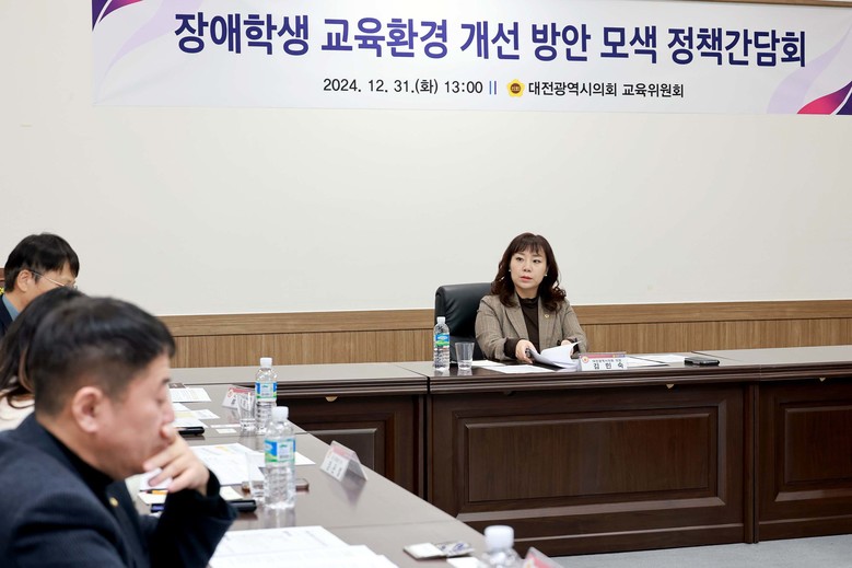 [대전 세계타임즈=이채봉 기자] 대전시의회는 31일 시의회 공감실에서 김민숙 의원(더불어민주당, 비례대표) 주재로 ‘장애학생 교육환경 개선 방안 모색 정책간담회'를 개최했다.