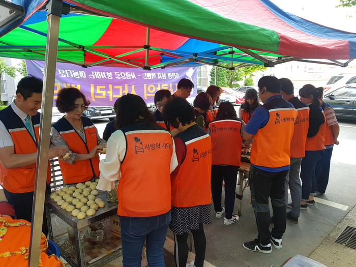 이날 빵봉사에는 박두현 회장, 김호현 이사, 유희자 이사 등 회원 30명이 참석하여 단팥빵과 소보로를 640개를 만들어서 320명 어르신들께 2개씩 전달해 드렸다.