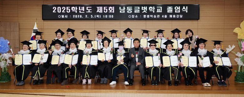 박종효 남동구청장은 “배움에는 나이가 없다는 것을 보여준 졸업생들의 도전에 박수를 보낸다”라며 “남동구는 앞으로도 성인문해교육을 적극 지원해 누구나 다시 배울 수 있는 평생학습 환경조성을 위해 노력하겠다”라고 밝혔다.