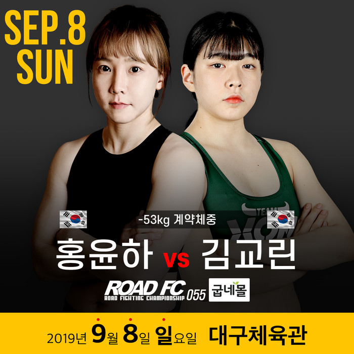 ROAD FC 김대환 대표는 “홍윤하는 그래플링, 김교린은 타격에 강점을 보이는 선수다. 완전히 다른 장점을 가진 두 파이터의 대결이다. 그럼에도 저돌적인 성향을 가진 것은 공통점이다. ROAD FC 케이지 위에서 두 파이터가 어떤 모습을 보여줄지 기대된다.”고 말했다.