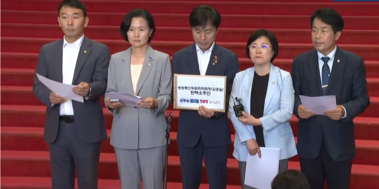 [세계타임즈 = 심귀영 기자] 더불어민주당은 국회에서 의원총회를 열고 김홍일 방송통신위원장에 대한 탄핵소추안을 당론으로 채택했다.노종면 원내대변인은 의원총회 뒤 기자들을 만나 현재 2인 체제로 불리는 방통위에서 두 명의 위원만으로 중요 결정을 내리는 상황 자체가 직권남용이고 위법이라며 이같이 밝혔다.노 원내대변인은 6월 임시국회 내에 탄핵안을 통과시키는 것이 목표라고 설명했다. 6월 임시국회 회기는 다음 달 4일까지다.국무위원 탄핵소추안은 재적의원 3분의 1(100명) 이상이 발의하면 그 이후 처음 열리는 본회의에 보고되고, 보고가 이뤄지면 24시간 이후부터 72시간 이내에 무기명 투표로 표결이 진행된다.통과 요건은 재적의원 과반수(151명) 찬성으로, 원내 과반 의석을 가진 민주당은 탄핵안을 단독으로 처리할 수 있는 상황이다.특히 이번 탄핵안은 MBC 최대 주주인 방송문화진흥회 현 이사들의 임기 만료 시점(8월 12일)과 맞물려 있어 주목된다.탄핵안이 본회의를 통과하면 방통위원장의 직무가 정지되고 방통위에서는 이상인 부위원장 한 명만 의결권을 행사할 수 있게 된다.이 경우 현재 2인 체제인 방통위는 안건 의결 조건인 과반 찬성을 충족시키는 게 불가능해지며, 결과적으로 방문진 이사 교체 안건도 의결할 수 없는 상태가 된다.일각에서는 탄핵안 통과가 가시화될 경우 김 위원장이 직무 정지를 피하기 위해 자진사퇴를 할 수도 있다는 관측이 나온다.노 원내대변인은 지난해에도 이동관 전 방통위원장을 탄핵하려 하자 이 전 위원장이 자진사퇴한 일이 있었다며 탄핵이 이뤄지면 정부가 야심 차게 추진한 YTN 매각에 심대한 차질이 빚어지기 때문이라고 말했다.정부는 이후 새 위원장을 내세워 YTN을 매각했다며 당시 이 전 위원장의 사퇴를 두고 도망갔다고 평가한 사람도 있었다며 이번에 김홍일 위원장은 그 자리를 지킬지, 이 전 위원장처럼 도주를 선택할지 지켜볼 일이라고 말했다.일각에서는 6월 임시국회 종료까지 시간이 촉박하다는 점에서, 실제 탄핵안 표결은 다음 회기로 넘어갈 수 있다는 전망도 나온다.