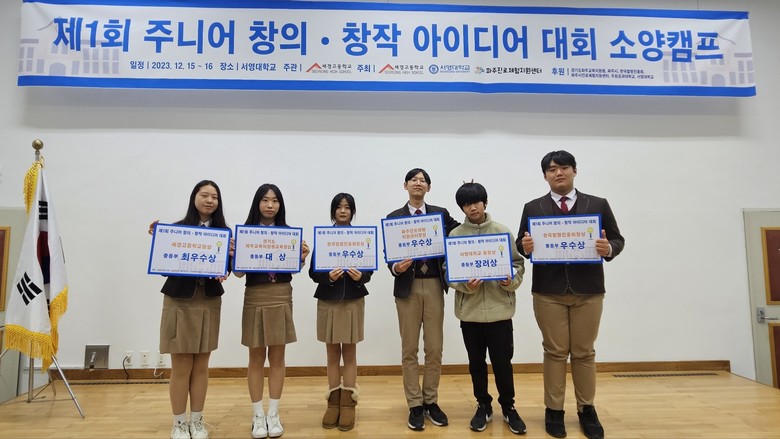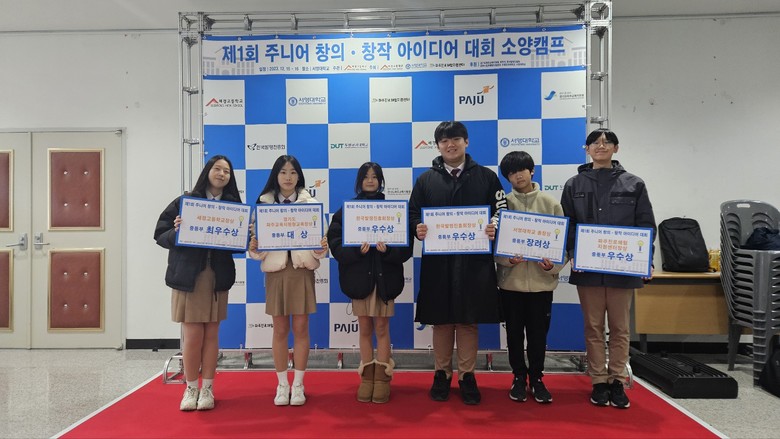 [파주시 세계타임즈=송민수 기자] 파주중학교(교장 이혁규)는 2023.12.15.(금) ~ 12.16.(토)에 열린 제1회 주니어 창의·창작 아이디어 대회에서 대상을 비롯하여 7개의 상을 획득하는 쾌거를 이뤘다고 밝혔다.