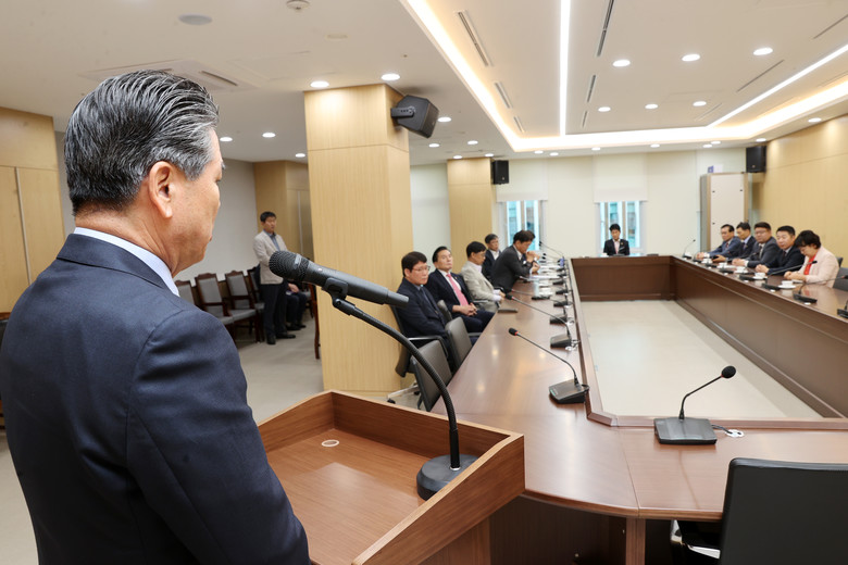[충북 세계타임즈=이현진 기자] 윤현우 충북체육회 회장이 16일 충북도의회(의장 이양섭) 의장단 및 상임위원장 회의를 방문해 지난 3일 본회의장에서의 소란 행위에 대해 의회와 의원, 도민들에게 사과했다.