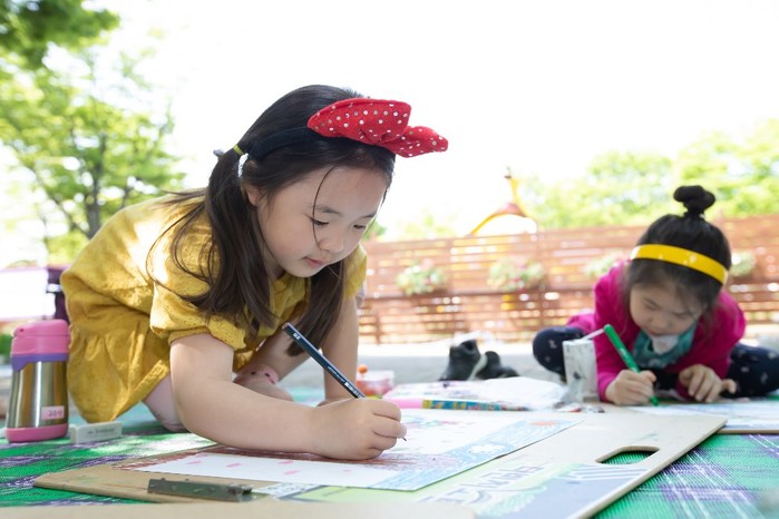 5일 고양국제꽃박람회장(일산 호수공원) 내 한울광장에서 열린 ‘꽃그림 그리기대회’에 참가한 꼬마 친구들이 꽃 그리기에 열중하고 있다. 이날 꽃박람회장에는 어린이날을 맞아 그림그리기 외에도 버블쇼와 마술 체험 등 어린이들이 직접 참여할 수 있는 다양한 프로그램이 진행됐다.