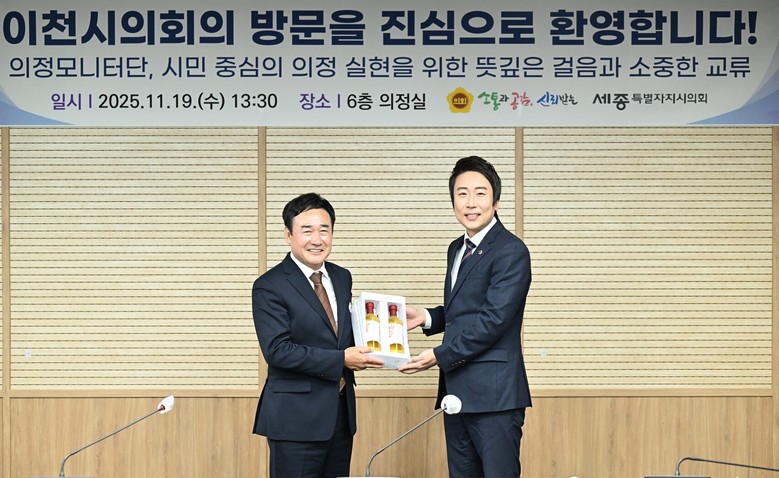 이번 방문에는 박명서 이천시의회 의장을 비롯해 의정모니터단 4명, 의회사무과 직원 등 총 16명이 참여했다. 이날 행사를 통해 세종시의회는 시민참여 기반으로 운영된 ‘의정모니터단’의 성과를 공유하고, 세종시의회의 시민참여 모델을 홍보하는 등 의정활동의 범 지역적, 질적 향상을 모색했다.
