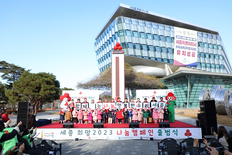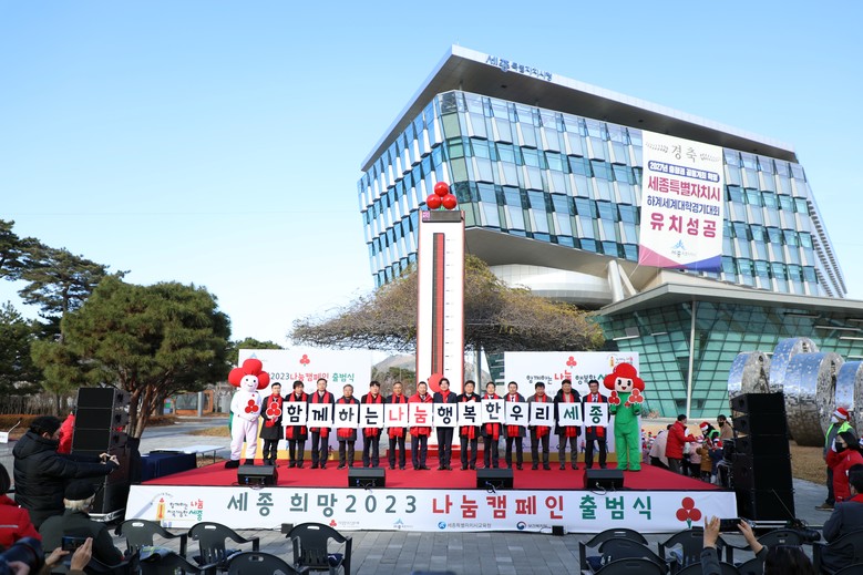 [세종 세계타임즈=이채봉 기자] 세종특별자치시의회(의장 상병헌)는 1일 세종시청 광장에서 열린 ‘희망 2023 나눔캠페인 출범식 및 사랑의 온도탑 제막식’에 참석해 어려운 이웃들을 위한 연말연시 나눔 운동의 시작을 알렸다.