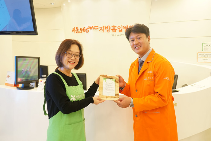 지난 30일 서울 365mc병원에서 진행된 기부품 전달식에는 365mc병원 안재현 대표병원장과 아름다운가게 나눔문화국 이승선 국장 등 캠페인 관계자가 참석했다.