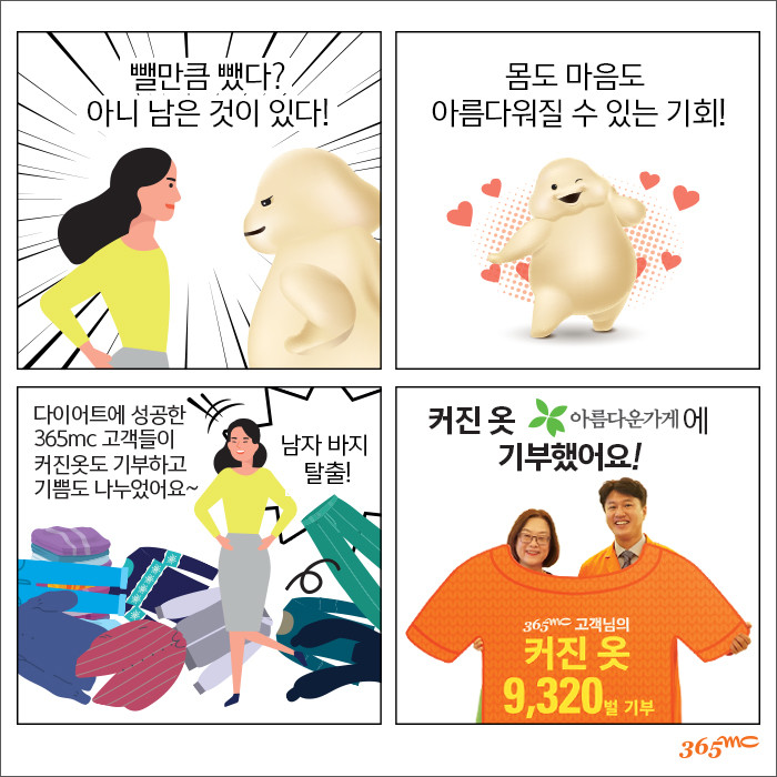 캠페인은 지난해 11월 1일~12월 31일까지 서울·부산·대전·대구 등 365mc의 15개 지점에서 다이어트에 성공한 고객들의 참여로 진행됐다.