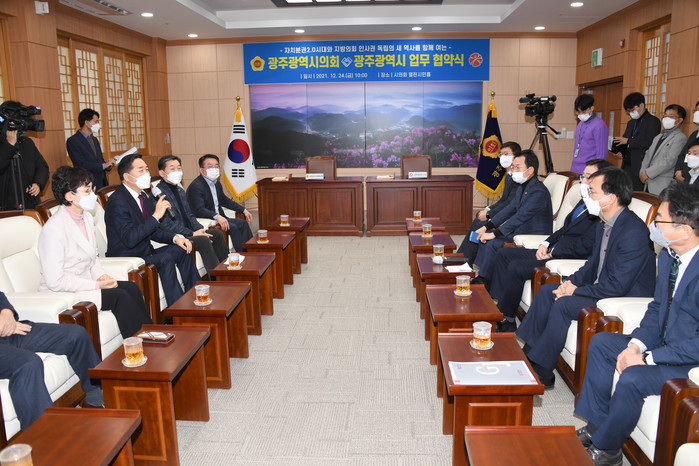 광주광역시의회 김용집 의장은 “지방의회의 숙원사업이었던 지방의회의 인사권 독립이 시행됨에 따라 집행부와 적극적인 협력을 약속하게 되어 매우 뜻깊고 감사하게 생각하며, 광주광역시의회와 광주광역시가 동반자적 관계로 적극적 협력을 통해 인사권 독립의 성공적인 정착을 이루어내길 기대한다”고 말했다.