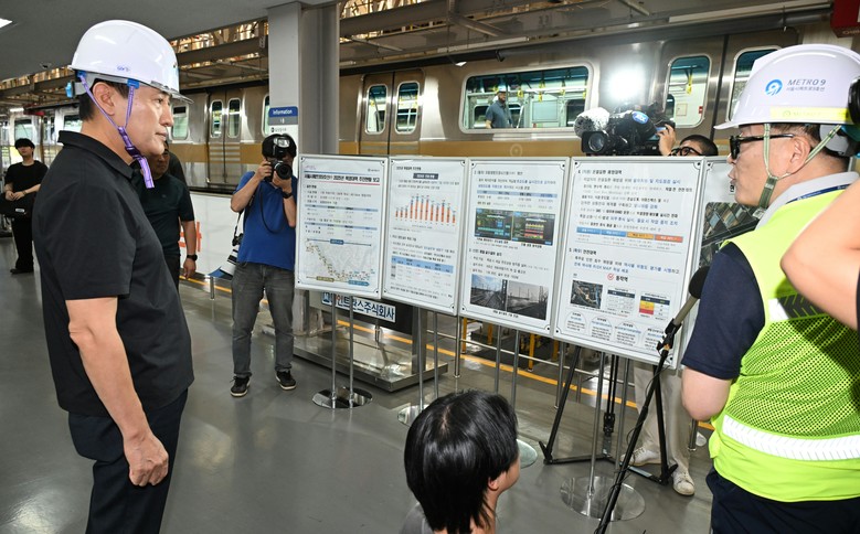 [서울 세계타임즈=이장성 기자] 오세훈 서울시장은 전국 대부분 지역에 폭염특보가 내려진 11일(금) 오전 10시 30분 서울지하철 9호선 개화차량기지(강서구 개화동)를 찾아 기록적 무더위 속 철도시설물 관리 현황과 승객 지원 대책을 점검했다.