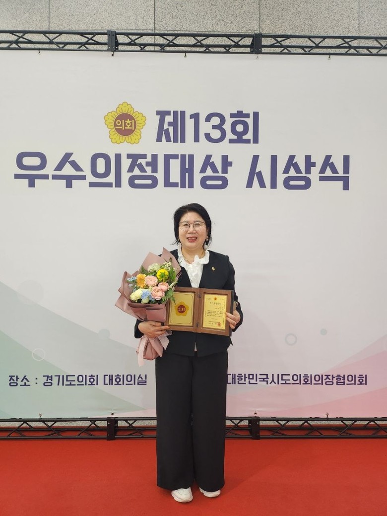 전국시·도의회의장협의회가 주관하는 ‘제13회 우수의정 대상’은 전국 17시 시·도의회의원의 의정활동을 평가해 지역주민의 복리증진과 지역사회 발전에 능동적인 역할을 해 모범이 된 우수한 의원을 대상으로 수여되는 상이다.