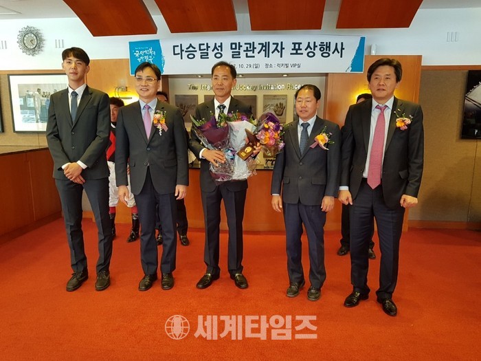 [세계타임즈 신민정 기자]난 29일(일) 마사회(회장 이양호)가 다승 달성한 말 관계자 포상 행사를 시행했다. 수상 대상자는 조교사 2명이며 달성 승수에 따른 포상금과 기념패를 전달했다.