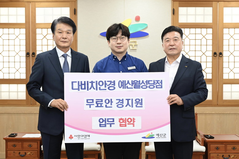 협약에 따라 다비치안경 예산월성당점은 무료로 안경을 지원하고 군은 지원 대상자를 발굴·연계해 맞춤형 복지서비스를 제공할 예정이다.