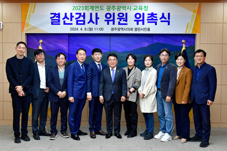 [광주 세계타임즈=손권일 기자] 광주광역시의회(의장 정무창)는 4월 8일 시의회 열린시민홀에서 광주시와 시교육청에 대한 2023회계연도 결산검사위원 위촉식을 개최했다.