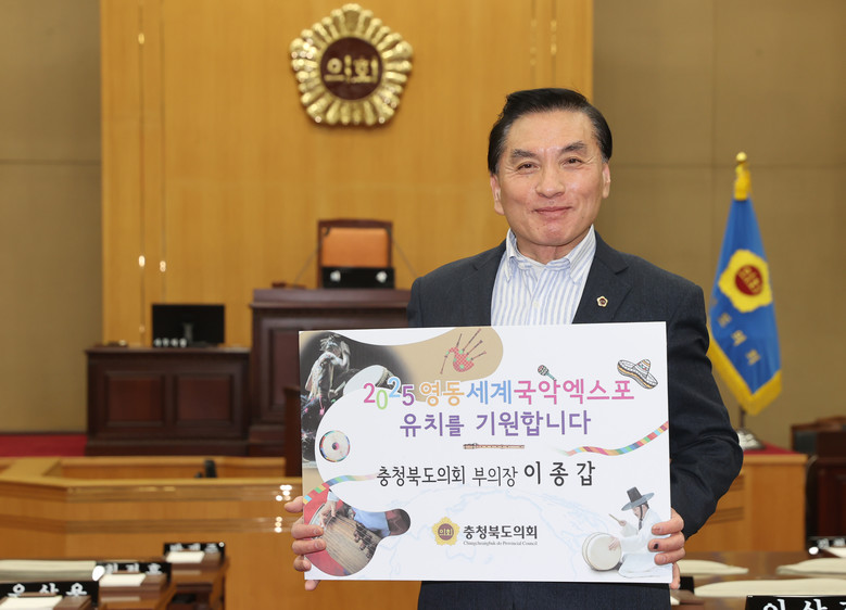 [충북 세계타임즈=이현진 기자] 이종갑 충북도의회 부의장은 2.8일 황영호 충북도의회 의장의 지명(2.6)을 받아 ‘2025영동세계국악엑스포 유치 기원 챌린지 캠페인’에 동참했다.