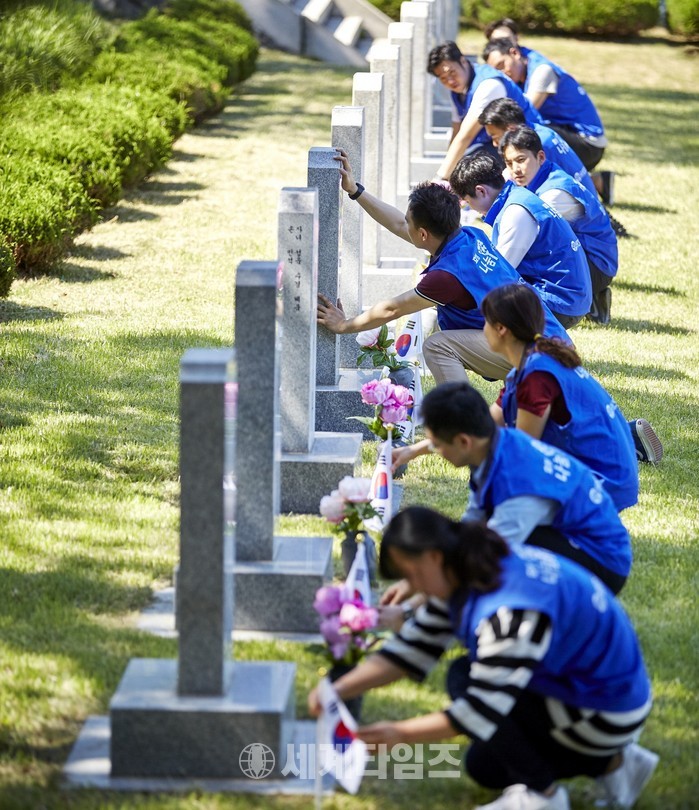 ▲ © 세계타임즈 효성 임직원들이 2016 5 25일 국립서울현충원에서 묘역정화활동을 하고 있다.