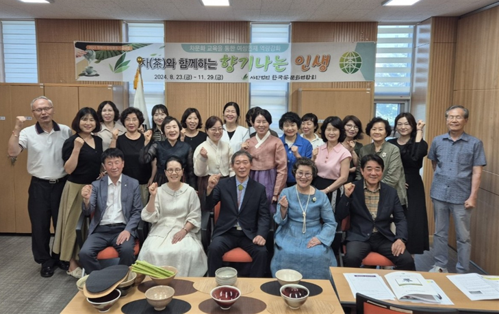 [세계타임즈]최성룡기자 = 茶문화 발전과 인성문화 증진을 위하여 활동하는 사단법인 한국차문화연합회(회장 고성배)는 차문화 지식 교육을 통한 여성인재 개발 및 역량 강화를 위하여 23일 14시, 마산문화원에서 ‘향기나는 인생이란’ 주제의 교육개강식을 하였다.