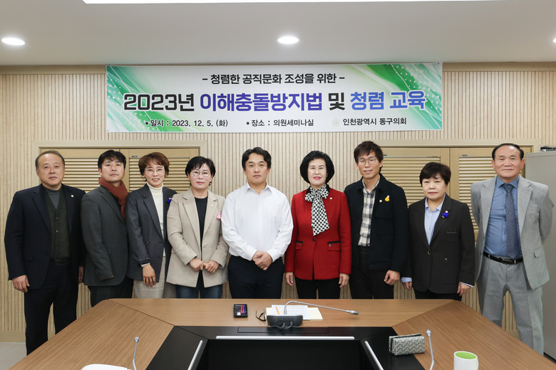 [동구 세계타임즈=심하린 기자] 인천 동구의회(의장 유옥분)는 5일 의원세미나실에서 소속 의원과 의회사무과 직원을 대상으로 『청렴 및 이해충돌방지법 교육』을 실시했다.