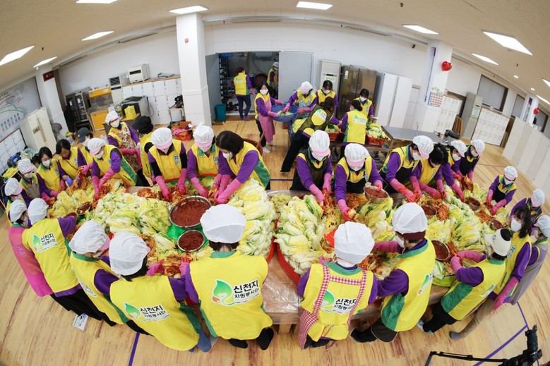 지난 7일 '사랑의 김장 나눔‘ 행사를 위해 김장에 참여하고 있는 신천지 자원봉사자들의 모습.3. 조촌동