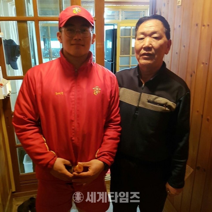| ▲ © 세계타임즈 <구조한 할아버지(우)와 함께 있는 황태욱 상병(좌)의 모습.(사진 제공 - 원동환 중사)> |