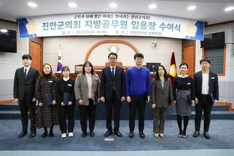 진안군의회에 따르면 김민규 의장은 이날 승진, 전입자 및 신규임용자를 포함한 8명의 직원들에게 임용장을 교부했다.