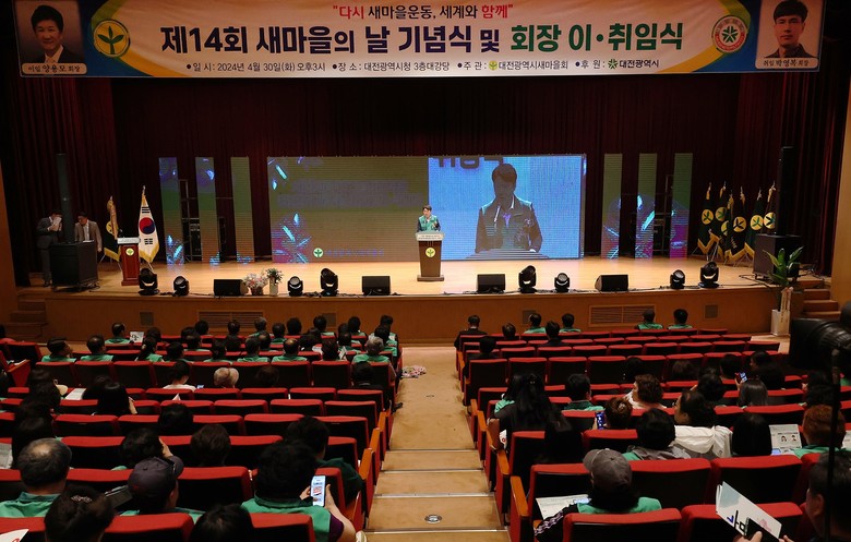 [대전 세계타임즈=이채봉 기자] 대전시의회 김진오 부의장은 30일 시청 대강당에서 열린 ‘제14회 새마을의 날 기념식 및 제18대 회장 이·취임식’에 참석해 그간 대전시 새마을회를 이끌어 온 양용모 회장의 노고에 감사를 전하고, 새로 취임한 제18대 박영복 회장에게 축하와 성원을 보냈다.
