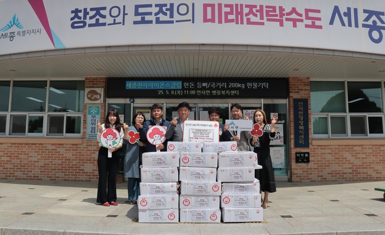 [세종 세계타임즈=이채봉 기자] 세종특별자치시 연서면지역사회보장협의체(공동위원장 김학용·한재현)가 8일 국제라이온스협회 356-F(세·충남)지구 세종지역 윤동필 위원장과 세종천하라이온스클럽으로부터 한돈 등뼈·국거리 총 200㎏를 기탁받았다.
