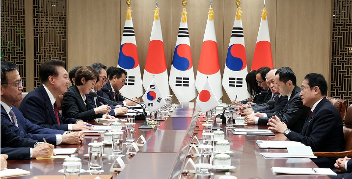 한일 정상회담에 우리 측에서는 최상목 부총리 겸 기획재정부 장관, 조태열 외교부 장관, 안덕근 산업통상자원부 장관, 장호진 국가안보실장, 윤덕민 주일본 대사, 김태효 국가안보실 제1차장, 이도운 홍보수석, 박춘섭 경제수석 등이 배석했다.일본 측에서는 모리야 히로시 관방부 장관, 아키바 다케오 국가안전보장국장, 미즈시마 고이치 주한일본 대사, 후나코시 다케히로 외무성 외무심의관, 세리자와 키요시 방위성 방위심의관, 나마즈 히로유키 외무성 아시아대양주국장 등이 자리했다.3국 정상은 저녁 환영 만찬을 함께 한다. 제9차 한일중 정상회의는 오늘(27일) 오전 대통령실에서 개최된다.