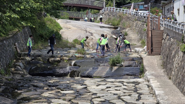 이날은 시민, 회원 90여 명이 참여한 가운데 시민들이 이용하는 교방천 돌다리를 닦고 하천 내 이끼와 부유물 제거, 보행산책로에서 각종 생활쓰레기를 수거했다.