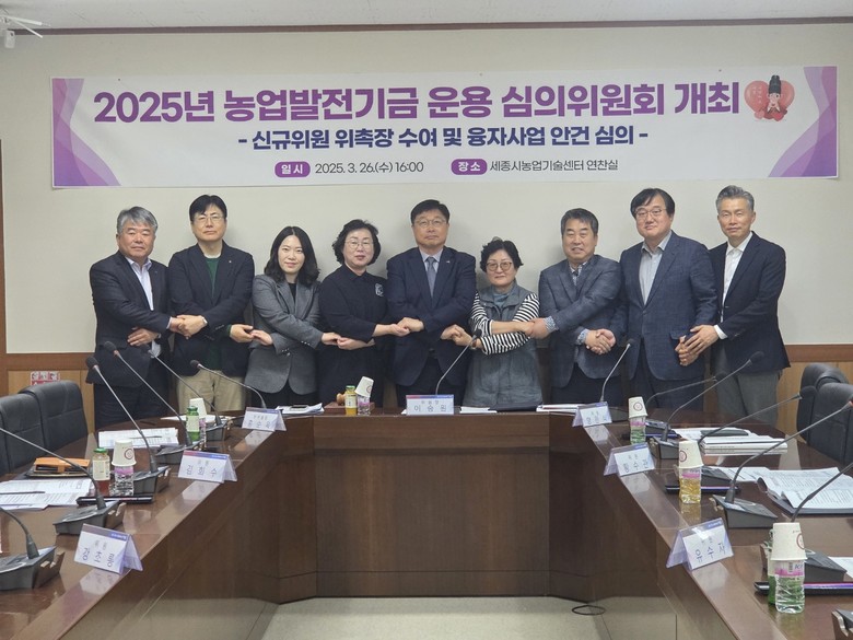 [세종 세계타임즈=이채봉 기자] 세종특별자치시(시장 최민호)가 26일 농업기술센터에서 상반기 농업발전기금 융자 지원 대상자 선정을 위한 심의위원회(위원장 이승원 경제부시장)를 열고 신규위원 위촉과 대상자 선정 심의를 진행했다.
