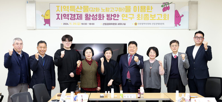 인천시의회 의원연구단체인 ‘지역 특산물을 이용한 창작 연구회(대표의원 박창호)’는 최근 박창호 의원(국·비례)을 비럿해 이명규(국·부평구1)·이선옥(국·남동구2)·박판순 의원(국·비례) 등이 참석한 가운데 연구용역 최종 보고회를 개최했다고 3일 밝혔다.