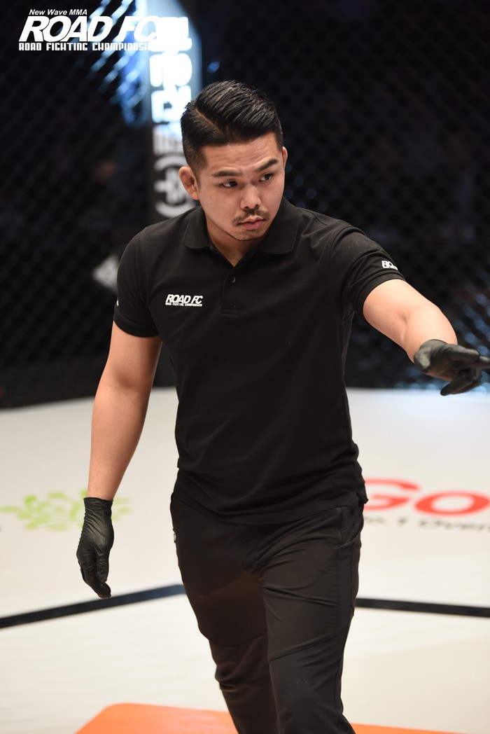 ROAD FC 심판팀장을 맡고 있는 임태욱 심판은 “클린치나 그라운드 상황에서 공격적인 움직임이나 다음 동작을 위한 발전적인 움직임을 하지 않으면 심판이 판단해 제지한다. 먼저 ‘액션’이라는 콜을 주며 공격적인 움직임을 유도하고, 그래도 움직임이 없으면 스탠딩 상황으로 전환해 다시 경기를 진행시킨다.”고 말했다.