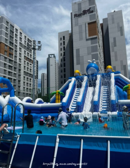 이번에 시는 두마면 지역 어린이들의 여름철 즐길거리 조성을 위해 워터슬라이드, 에어풀장 등 체험형 놀이기구와 휴게 쉼터를 설치해 어린이들 뿐만 아니라 부모님들에게도 큰 인기를 끌며 많은 이용자 수를 기록하고 있다.