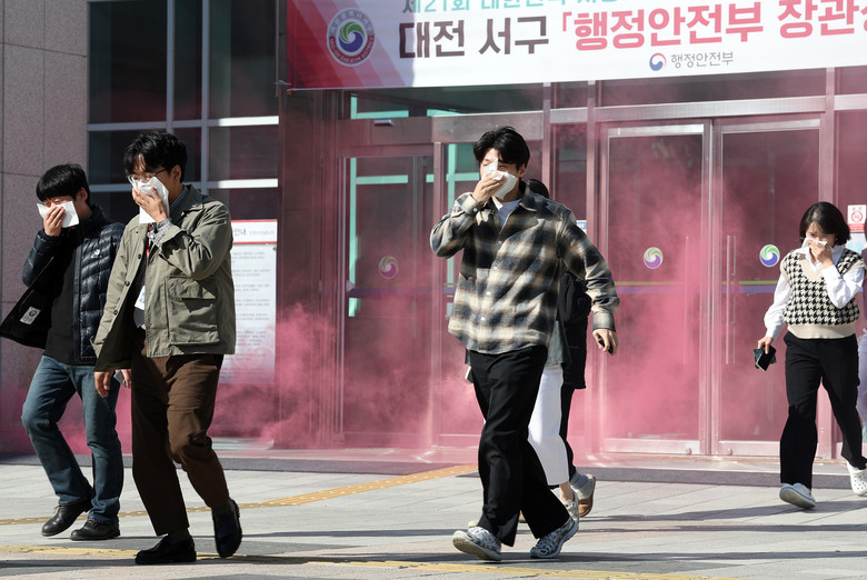 [서구 세계타임즈=이채봉 기자] 대전 서구(구청장 서철모)는 28일 서구청 광장에서 전 직원을 대상으로 자체 소방 훈련을 시행했다.