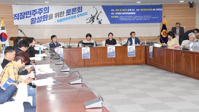 이날 토론회는 ‘민주주의는 회사 문앞에서 멈춘다’의 저자 우석훈 경제학 박사가 기조발제를 하고, 조용곤 광주일반노조위원장, 김나윤 시의원, 김설 광주청년유니온 청년회원, 최영준 케이비밸브테크 대표이사 등이 토론자로 참여했다.
