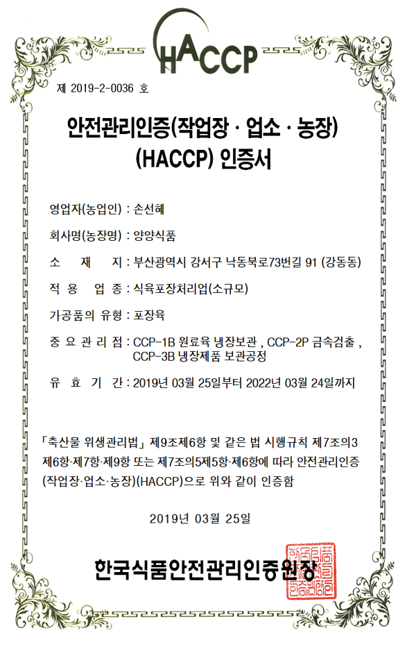 양양식품 양지이대표는 "2019년 3월2일부로 닭가슴살 재우스. 하이지아 고퀄리티 라인 제품들을 또 출시하며 양양식품이란 회사가 대한민국의 피트니스 시장에서 최고의 닭 가슴살 만들어내는 회사로 거듭나며 2020년 1월부로 법인전환을 계획하고 있습니다. 앞으로 양양식품 회사를 지켜봐 주십시요."라고 전했다.