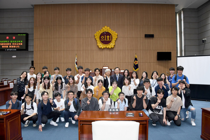 김동찬 의장은 학생들과의 간담회에서 “광주공동체의 미래를 이끌어 갈 전남대 정치외교학과 학생들이 광주시의회를 방문해 줘서 매우 기쁘고 진심으로 환영한다”며, “이번 방문을 통해 지방자치와 광주시의회 의정에 대한 관심과 참여를 높여 우리나라 민주주의를 발전시키는 지도자로서의 꿈을 키워주길 바란다”고 격려했다.