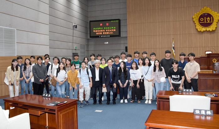 [광주=세계타임즈 손권일 기자] 김동찬 광주시의회 의장은 24일 전남대 정치외교학과(담당교수:조정관) 학생들을 광주시의회에 초청했다.
