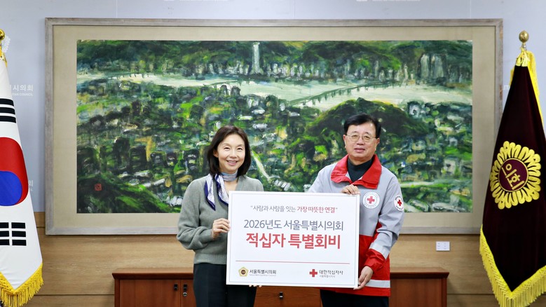 [서울 세계타임즈=이장성 기자] 대한적십자사 서울특별시지사(회장 권영규)는 서울특별시의회(의장 최호정)가 2026년도 적십자 특별회비를 전달하며 연말 이웃사랑 나눔에 동참했다고 밝혔다.