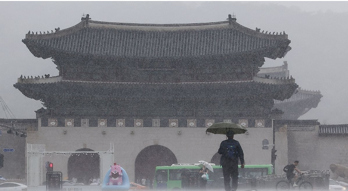세찬 비 내리는 광화문광장