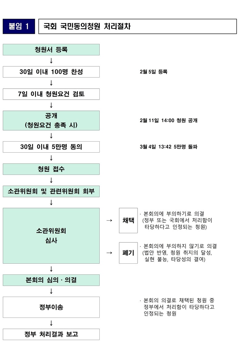 ◈ 5만 명 동의 조건이 충족된 만큼 청원 정식으로 접수되게 돼, 국회 정무위원회에