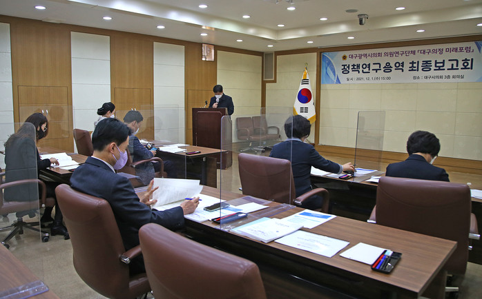 [대구=세계타임즈 한성국 기자] 대구광역시의회 의원연구단체 『대구의정미래포럼』이 12월 1일 오후 3시 시의회 3층 회의실에서 의원 정책연구용역 최종보고회를 열어 4~5개월간의 정책연구과정을 최종 마무리했다.