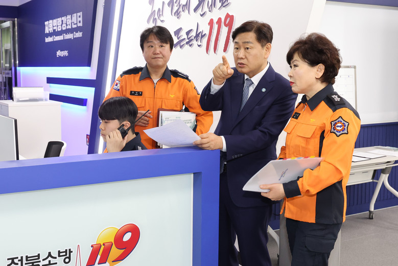 이날 김 지사는 소방교육훈련센터에 도착해 교육 현장을 순회했다. 다목적 강당에서 신규 임용 소방관들을 만나 격려의 말을 건넸고, 지휘역량강화센터에서는 재난 상황별 지휘 훈련에 임하는 대원들을 응원했다. 이어 훈련탑에서 전문 로프 구조훈련을 참관하고, 실화재 훈련장에서는 실제 불을 활용한 훈련 시설을 직접 시찰하며 시연을 지켜봤다.