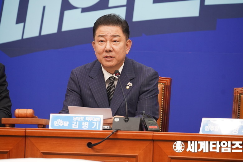 더불어민주당 김병기 당대표 직무대행 겸 원내대표가 14일 서울 여의도 국회에서 열린 최고위원회의에서 발언하고 있다.