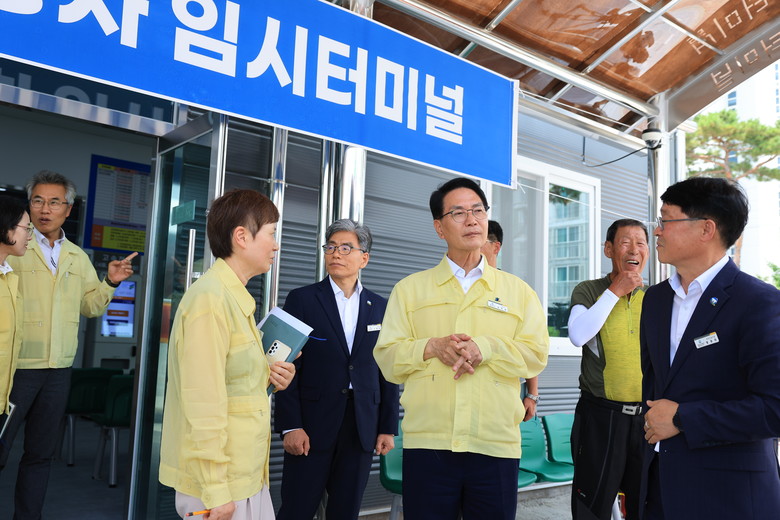임시터미널에는 매표소와 화장실, 안락한 대합실이 마련돼 있고, 여름철 불편 최소화를 위해 에어컨과 양심냉장고가 설치되며 무더위 쉼터 역할도 톡톡히 해내고 있다.