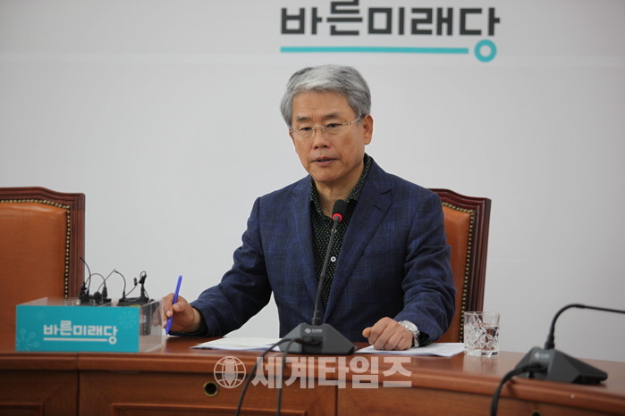 바른미래당 김동철 원내대표 기자간담회 하고 있는 모습 사진=이연종 기자